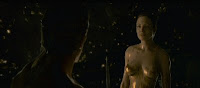 They’ve posted a new Rated-R trailer for the new Beowulf movie. Find it here. How you can have a Rated-R trailer for a Rated-PG-13 movie, I don’t quite understand, but I guess it makes no less sense than having Angelina’s digitally scanned breasts in a Beowulf movie to begin with. Don’t worry, they’re covered with digitally produced mud, so it’s like hardly nudity at all. Indeed, given the amount of time the animator must have spent trying different mud textures, adjusting its reflectiveness and bloom, mapping the physics, etc. it’s almost art. And so that you don’t give yourself a headache trying to hit the freeze frame at exactly the right shot to see the art, here you go: